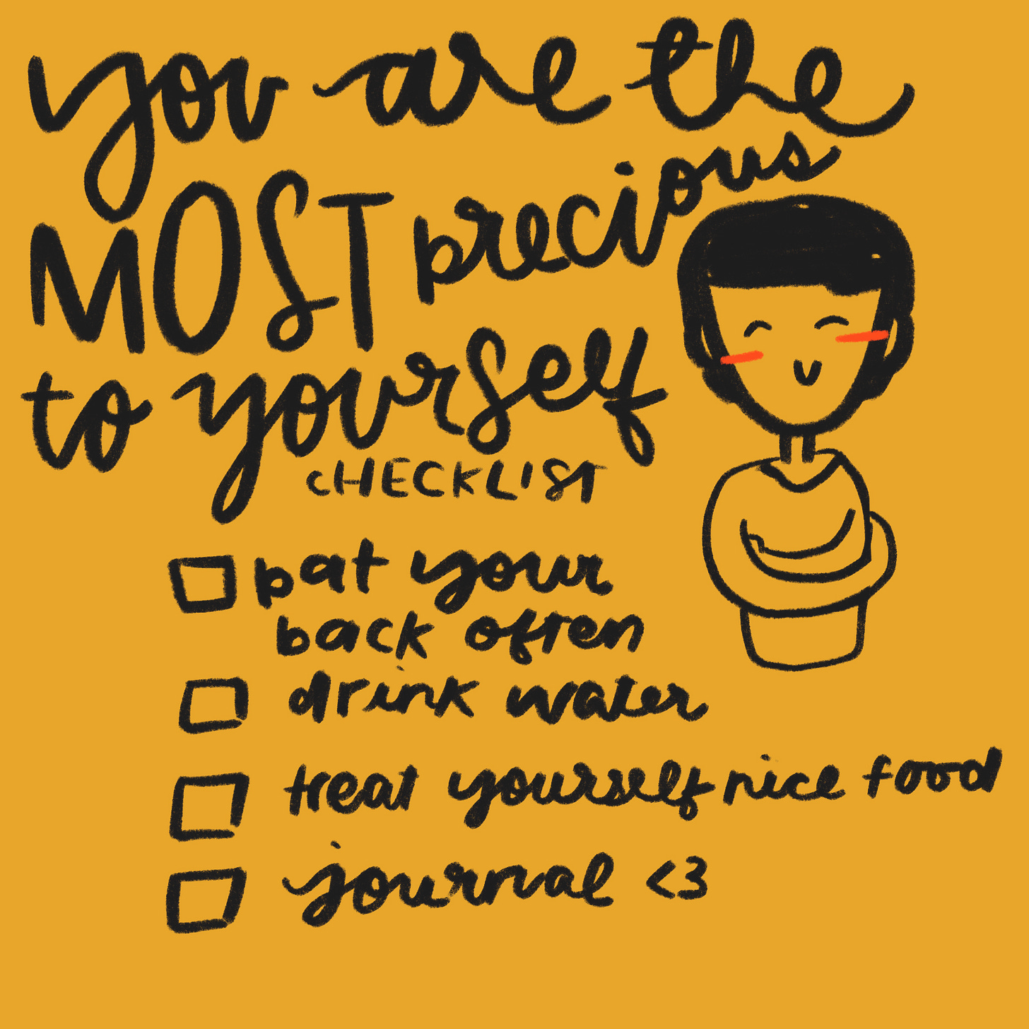 To my heart, which always dreamed of living on her own terms, I am proud of you. To you, who have had a hard day, you are the most precious to yourself, keep yourself safe and well fed hehe.
